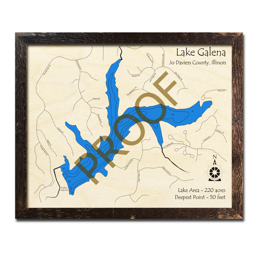 Lake Galena, IL Framed Map | 3D Nautical Wood Charts