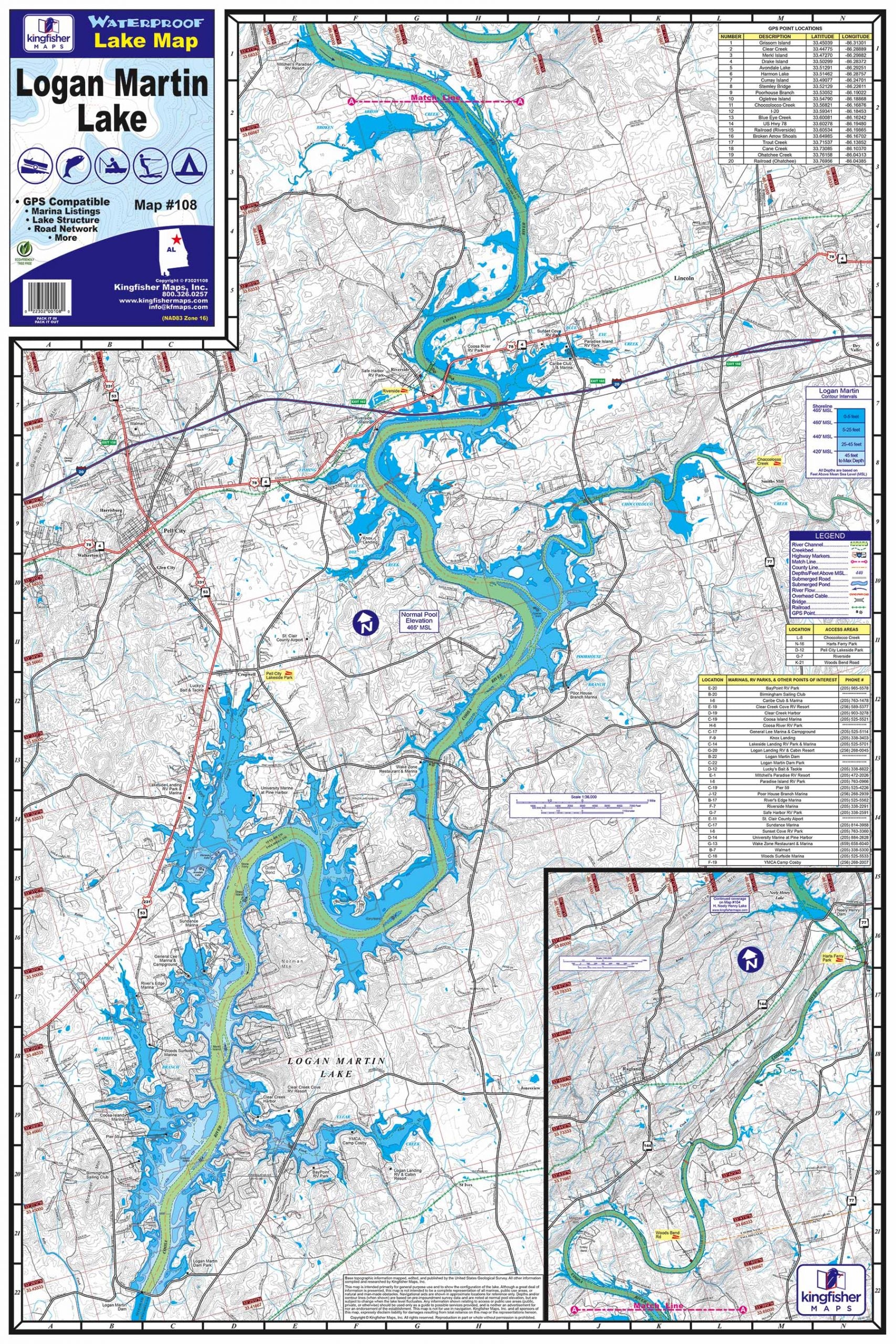 Neely Henry Lake Waterproof Map #104 โ Kingfisher Maps, Inc.